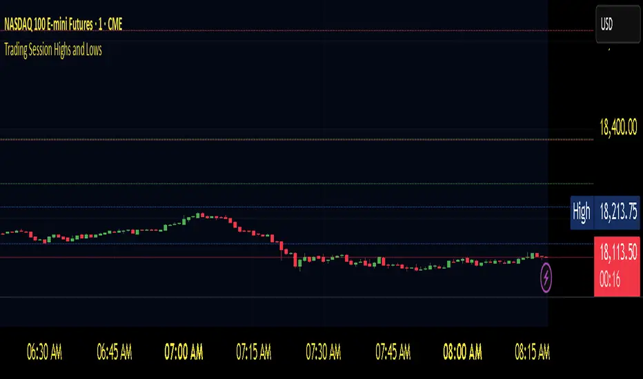Customizable Lines and Labels: You can adjust the line style, width, and color for each session’s high/low markers. The session name (e.g., "London", "New York") and the PDH/PDL (Prior Day High and Low) are also shown to give clear context.