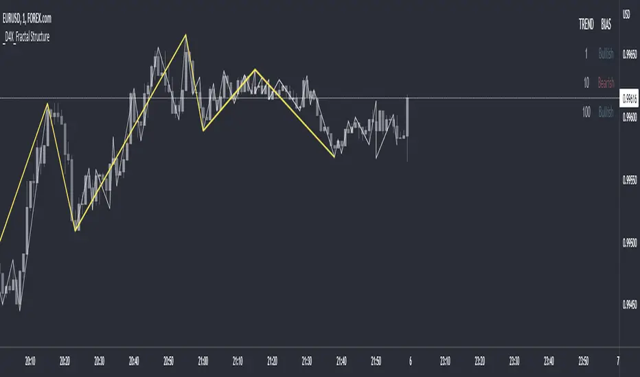 There are a couple of things I would like to add later on, for example, to select dots instead of lines to show structure or adding orderblocks based on the fractal formations (as this would emulate higher timeframe OBs). As soon as I can, I will add these.