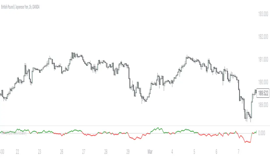 Visual Representation: The momentum difference is plotted on the chart as a colored line. If the momentum difference is positive, the line is green; if negative, the line is red.