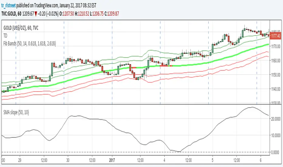 Slope function for SMA in degrees. This slope function you can use or modify for your own strategies. Feel free to change source to calculate the slope of another indicator. In this case you can see that the indicator is above the zero line indicating a positive momentum.