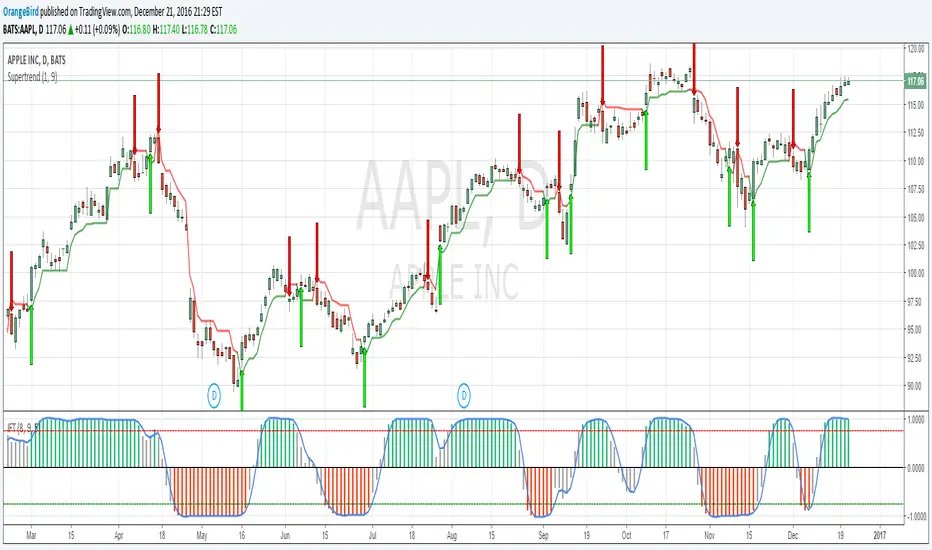 An inverse fisher transformation of a modified RSI plotted against a smoothed version of itself.