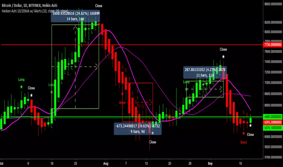 Heiken Ashi 10/20MA w/ Alerts v2.0