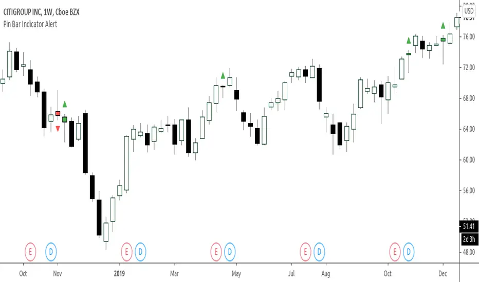 Plotting the indicator overlay and put arrows when the pin bar appear, green bullish and red bearish! 開源腳本