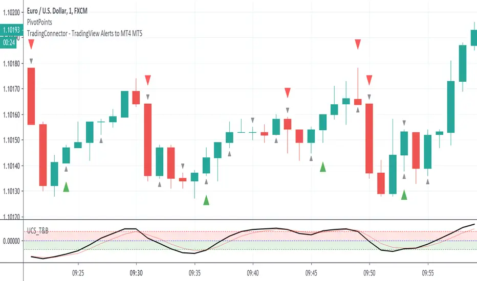This script enhances pivot-points mechanism with by confirming potential pivot point with actual reversal in momentum. If momentum reversal is also noticed in synch with the pivothigh/pivotlow, then you've got yourself a reversal - marked on the chart with red or green triangle. You can visually compare where those triangles are marked as compared to those small black ones, meaning the standard pivothigh(high,1,1)/pivotlow(low,1,1). Check yourself how many times this method would save us from pre-mature entry. On average 2/3 pivot points are filtered out.