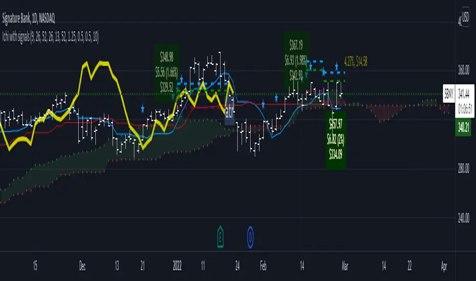 This simple script uses 4 rules from Ichimoku Cloud indicator to marks position entry points.