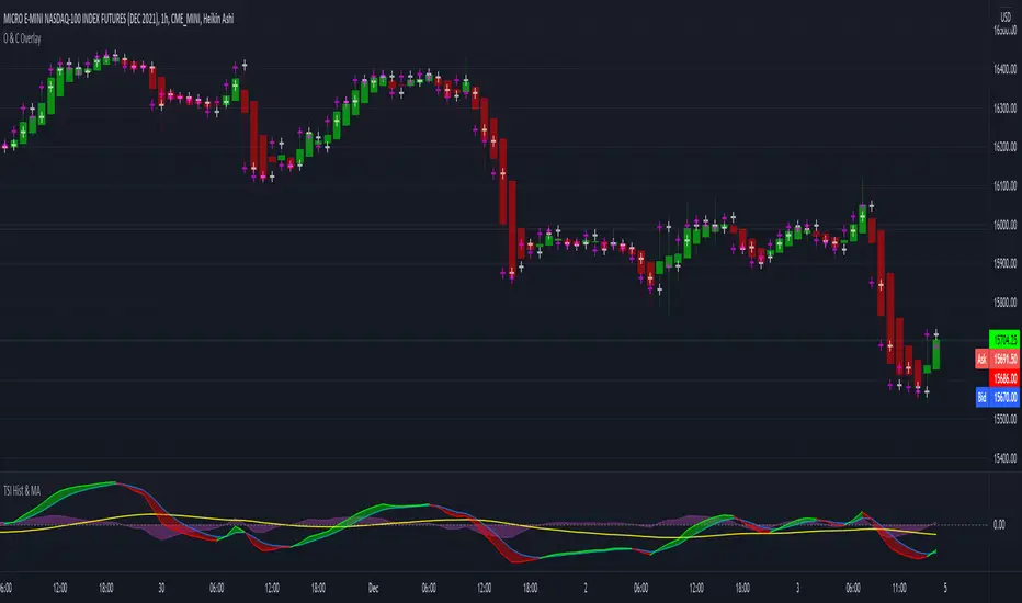 I built this indicator as a personal request from a friend. He often trades using Heiken Ashi charts, but wanted a way to easily cross-reference real-price open and close values for the same timeframe on the same chart (as HA candles are by design lagging, they can take a few periods to catch up to a large move). This can also be used to help guide support and resistance zones using real-price data points should you so choose.