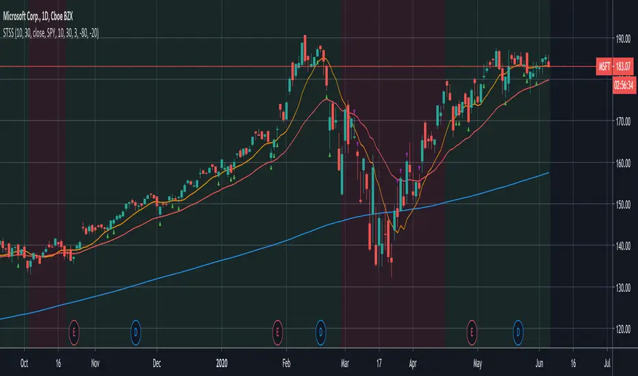 background will be red and only short indicators (purple arrows) will appear. If SPY is going up (10ma > 30ma),