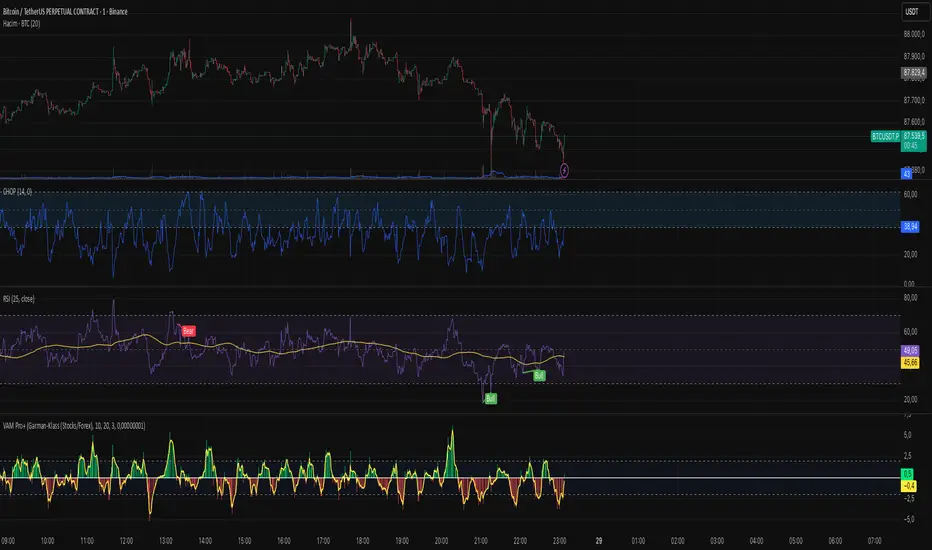 Volatility Adjusted Momentum (VAM) Pro+ is a professional quantitative tool designed to measure trend strength by normalizing momentum against market volatility. Standard momentum indicators often fail during high-volatility periods because they treat every price change the same regardless of market noise. This indicator solves that problem by scaling price changes based on their statistical significance using Z-Score logic. This Pro+ version is specifically optimized for Scalping and Intraday Trading by introducing advanced volatility estimators and mathematical horizon adjustments that superior to classic standard deviation models.