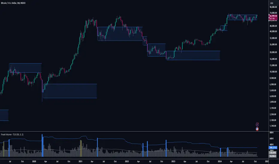 Freak Volume assists traders in visually identifying significant volume spikes that could indicate important market activity or potential turning points by providing multiple methods of high volume detection.