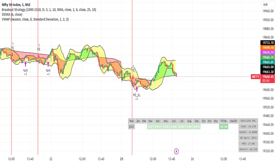 In summary, this script implements a breakout trading strategy with various customizable conditions, including Bollinger Bands, Dema-VWAP crossovers, and session-specific rules. It also includes options for setting stop losses and trailing stop losses to manage risk and lock in profits. The "trail factor" helps adjust trailing stops dynamically based on recent price movements. Positions are closed under certain conditions to manage risk and ensure compliance with the defined trading session.