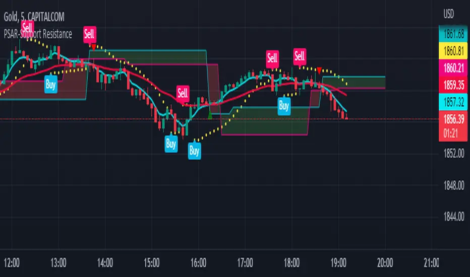 PSAR Cloud Support Resistance Enabled.* By Plotting SR lines by 10 candles, this SR Cloud acts as a Parabolic SAR S/R using previous 10 candles. Its easy to take trades in sideways market.