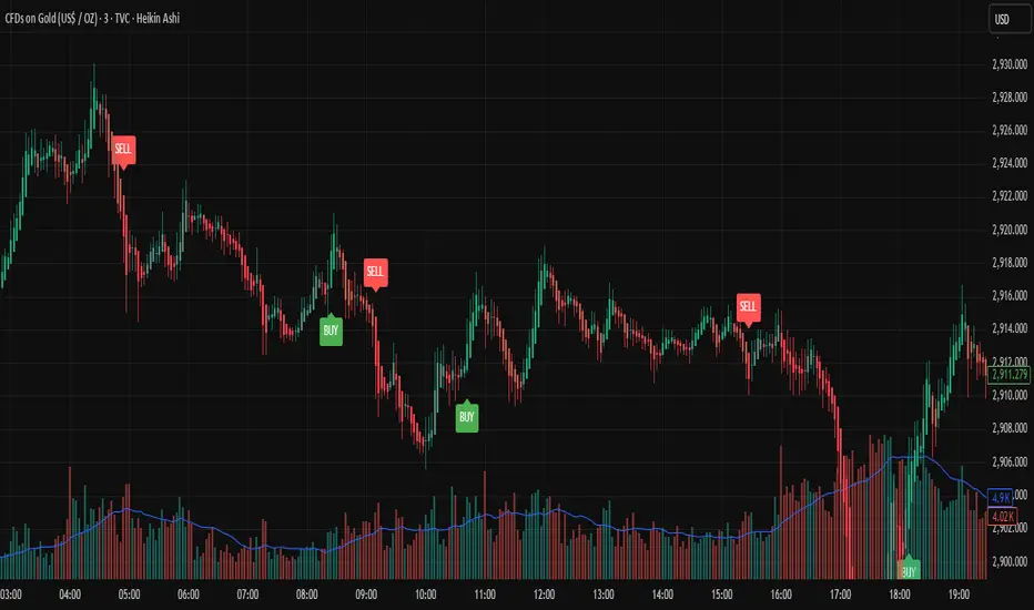 ✅ Buy & Sell Alerts – Displays green "BUY" labels and red "SELL" labels when trend changes.