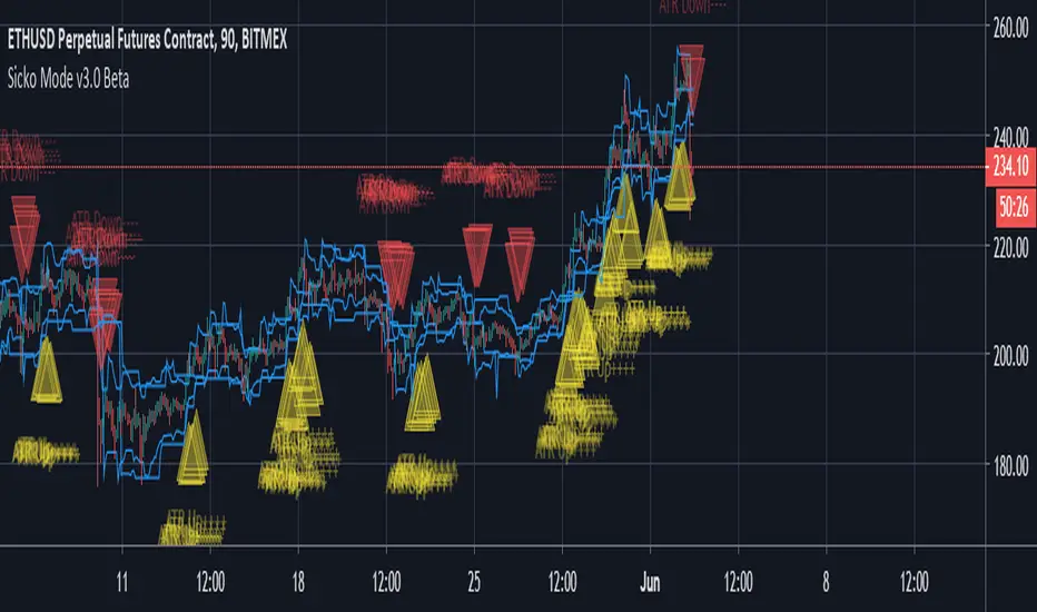 This indicator leverages the ATR over a certain metric where the exterior lines represent X amount of ATRs from the open of a consecutive candle sequence and X ATRs from the swing low or swing high over a period of X candles.