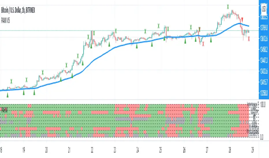 The heat map has been improved to align with the main indicator and the internal features of that.When there are at least six greens in a vertical line, this would indicate a buy signal. When there at least five reds/grays in a vertical line this would indicate a buy exit point.