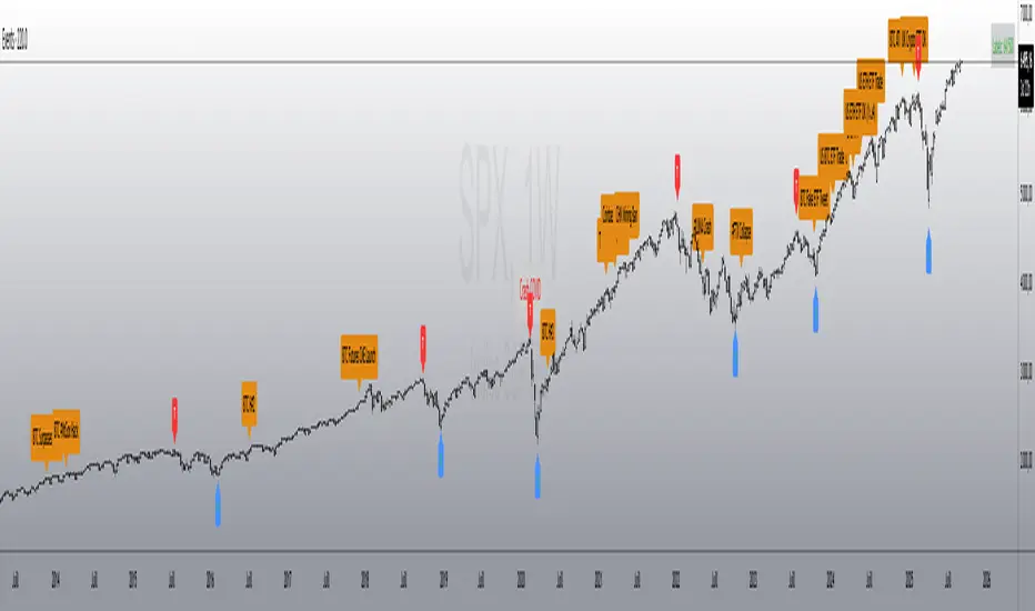 This indicator visually marks significant events on your chart. It is highly customizable, allowing you to activate or deactivate different groups of events and choose whether to display the event text directly on the chart or only when hovered over. Each group of events can be configured with distinct settings such as height mode, color, and label style.
