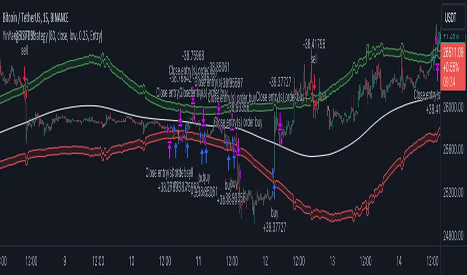 It’s simple really, when the purchase source crosses above the inner low band (red) it creates a Buy or Long. This long has a Trailing Stop Loss band (the outer low band that's also red) that can be adjusted in the Settings. The Stop Loss is based on a % of the inner low band’s price and by default it is 0.1% lower than the inner band’s price. This Stop Loss is not only a stop loss but it can also act as a Purchase Available location.