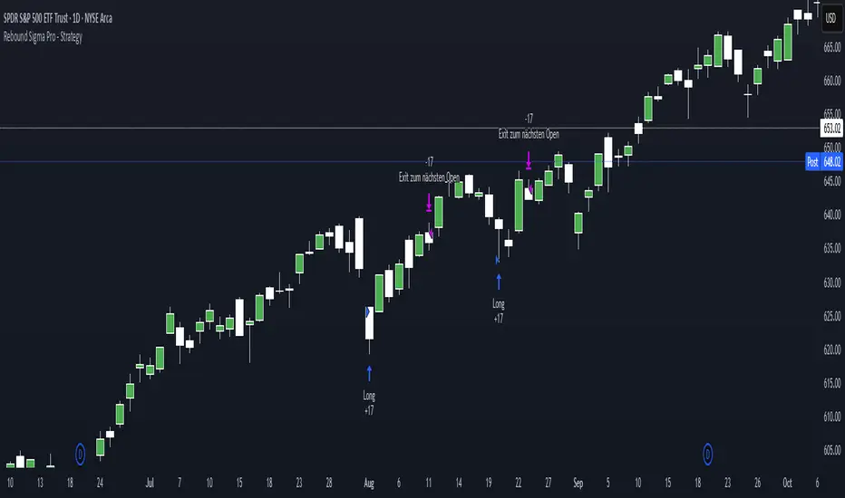 Rebound Sigma Pro is a mean-reversion indicator that detects statistically oversold conditions in trending markets.