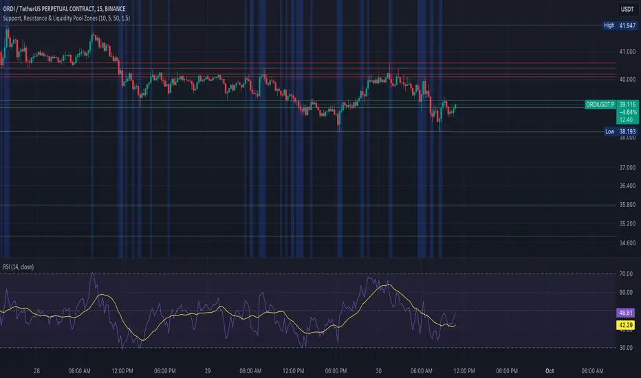 This indicator automatically detects and plots support and resistance levels based on pivot points and highlights liquidity pool zones, areas where the trading volume exceeds the average over a set number of bars. It is designed to help traders identify key price levels and liquidity traps that can trigger significant market reactions.
