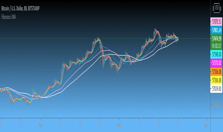 In this script you will find a preset of 7 moving averages - 8,13,34,55,89,144,233 based on Fibonacci progression.
