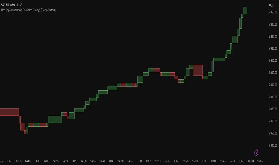 Non-Repainting Renko Emulation Strategy [PineIndicators]