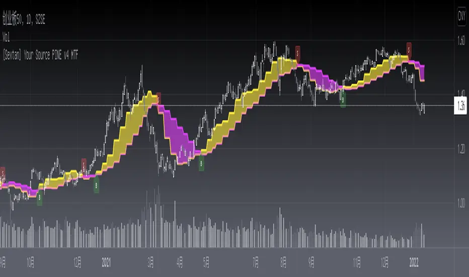 NOTE1: As requested, this is a multiple time frame(MTF) version of input signal source, which enable you to backtest any indicator/strategy MTF with "{Sextan} PINEv4 Sextans Backtest Framework". Courtesy of cheatcountry for his security() wrapper to avoid repainting caused by security() function.