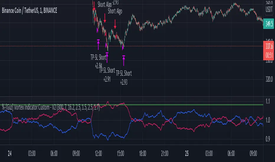 Added the underlay plotting of the indicator for it to be visible under the chart, 2 vortex lines + threshold line.The Long and Short opening correspond to the blue line and the red line crossing over the threshold respectively.