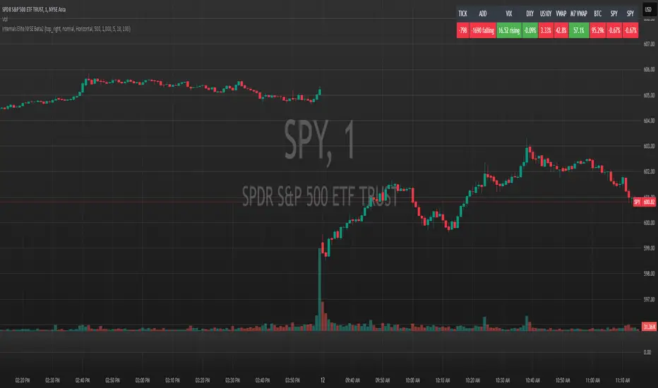This indicator is designed to provide traders with a quick overview of key market internals and metrics in a single, easy-to-read table displayed directly on the chart. It incorporates a variety of metrics that help gauge market sentiment, momentum, and overall market conditions.