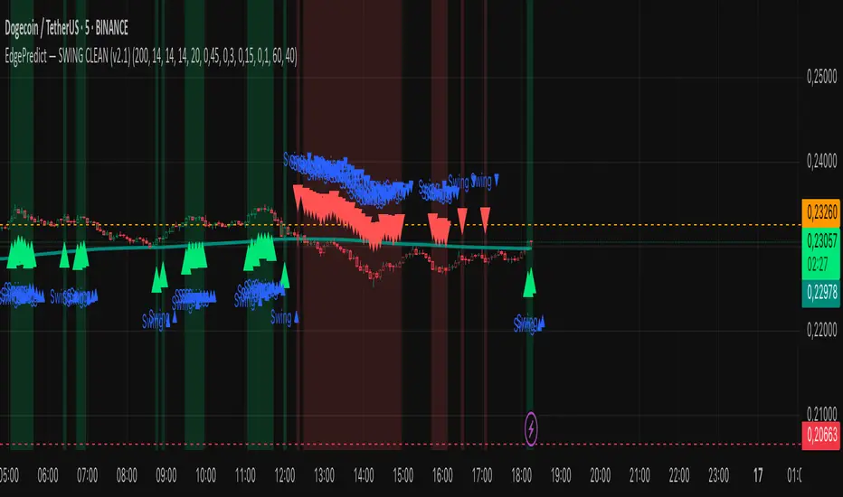 Colored candlesticks = context (above EMA → greenish, below → reddish).