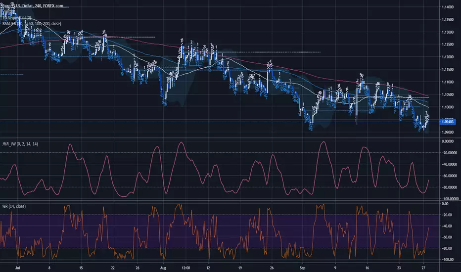 This is Williams %R that has been used using Jurik's method. This removes a lot of the chop and false signals of William's %R while adding only minimal lag.