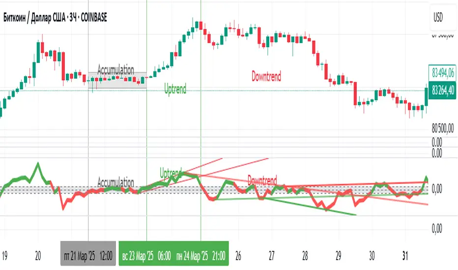 Индикатор "SMA Trend Filter Oscillator (Adaptive)" — это инструмент технического анализа, который помогает трейдерам определять направление тренда и его силу на основе адаптивной скользящей средней (SMA). Осциллятор рассчитывает разницу между ценой закрытия и значением SMA, что позволяет визуализировать отклонение цены от среднего значения и оценивать текущую рыночную динамику.