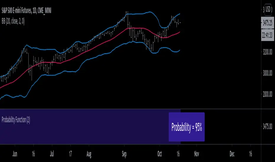 It's my birthday today! Just turned 20, so I decided to make another indicator. There's not very many indicators on TV that calculate pure probability. Many indicators on TV have the word "Probability" in their titles but they don't actually calculate probability...I call them "false titles". This indicator aims to change that. This is the indicator that every option trader dreams of having. Even if you're not an options trader, it's still very interesting to know the probability of a price movement.