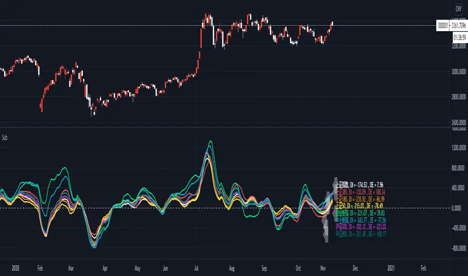//The purpose of the indicator is to monitor the Chinese stock market index deviation rate to the 20EMA, so each major index can be observed longitudinally at the same time.