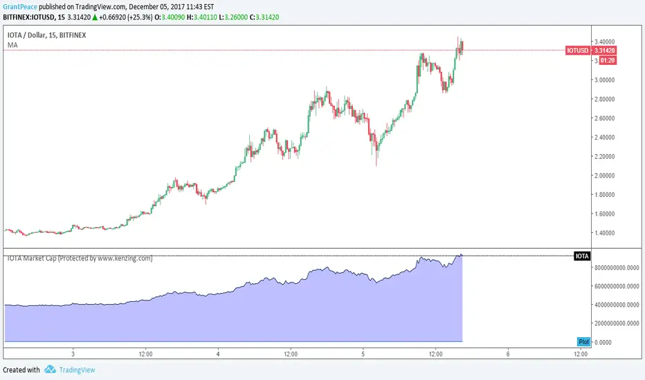 This plots the exact value of the current IOTA market capital in real-time.