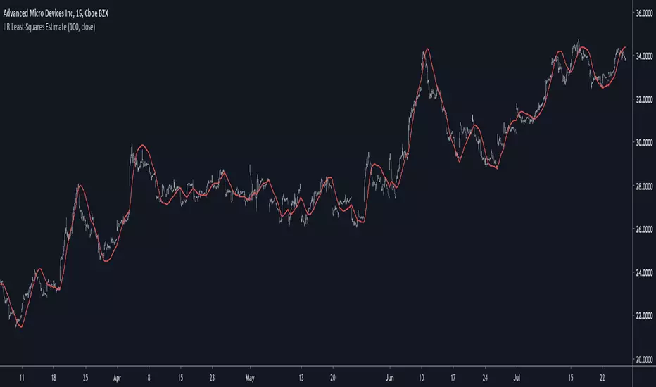 Some surprises, the estimate can at least act as a good low-lag filter, sometimes it also behave better than the lsma by smoothing more. IIR estimate are harder to make but this one look really correct.