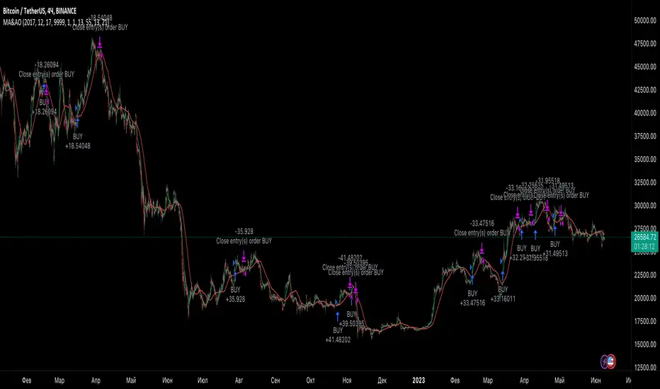 That is quit simple strategy, which combines only two indicators: AO and MA. The logic of trades is also clear, when AO is bullish; slow ma is under the close price; fast ma > slow ma - buy.