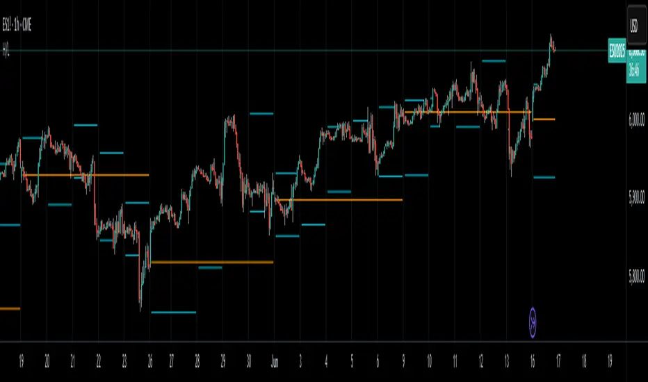 The cyan lines show previous day's high/low, while the orange line displays the weekly open. All levels use non-repainting data for reliable backtesting.