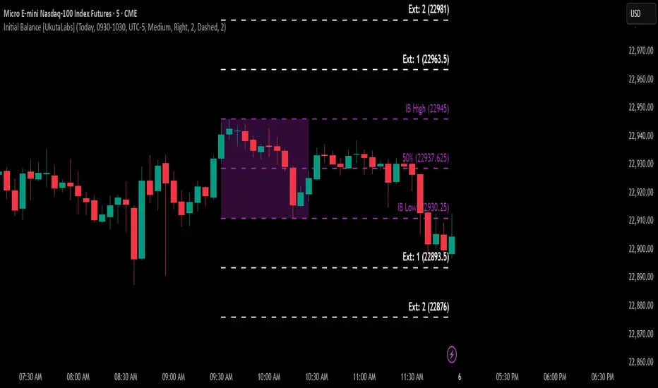 • Major changes to the script, the indicator should function mostly the same though.• Adjusted the range of Initial Balances. Rather than extending until the next one is formed, they now stop at end of day.