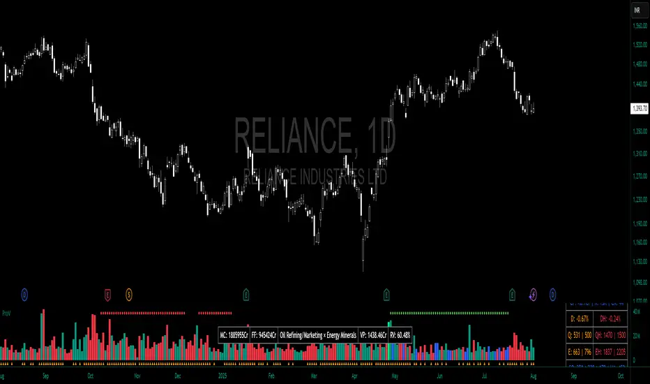 The Pro Volume By TradeINski indicator is a comprehensive trading tool designed to enhance volume analysis, position sizing, and trend identification. It integrates multiple trading metrics into a single dashboard, helping traders make informed decisions based on volume dynamics, momentum bursts, trend intensity, and risk management.