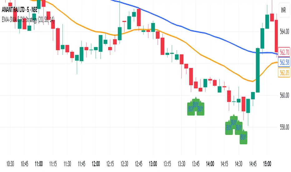using RSI and EMA strategy, it works on RSI based rules as well as indicator based rules