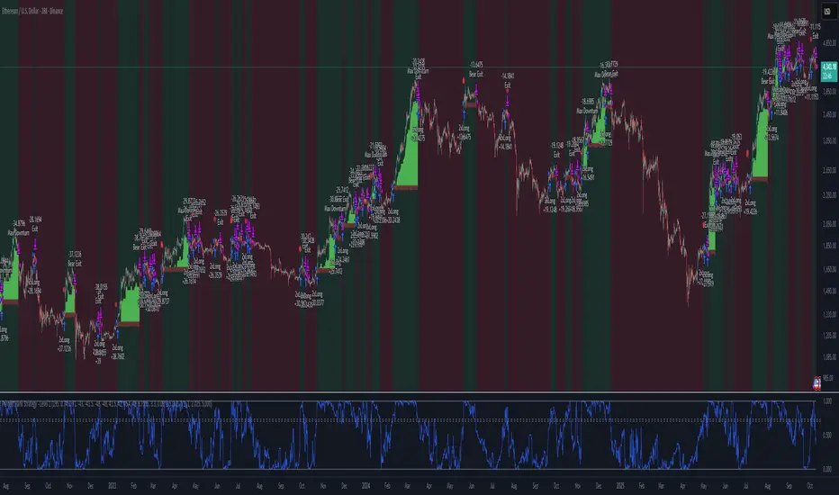 This strategy is published as invite-only with hidden source code. Access may be granted upon request for research or evaluation purposes. It is part of a broader collection of technical analysis strategies I have developed, which focus on regime detection and adaptive trading systems.