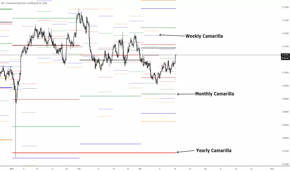 This is a fairly basic (but hopefully useful) indicator that combines three time-frames of Camarilla pivots into one.