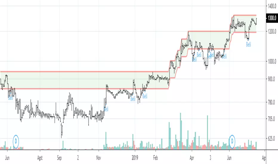 Script ini digunakan untuk emlihat harga yang berada atas 90% dari harga tertinggi 300candles. Area yang menjadi resisten penting, bila harga kemudian breakout harga tertinggi 300candles terakhir, kemungkinan besar akan melanjutkan trend naik.