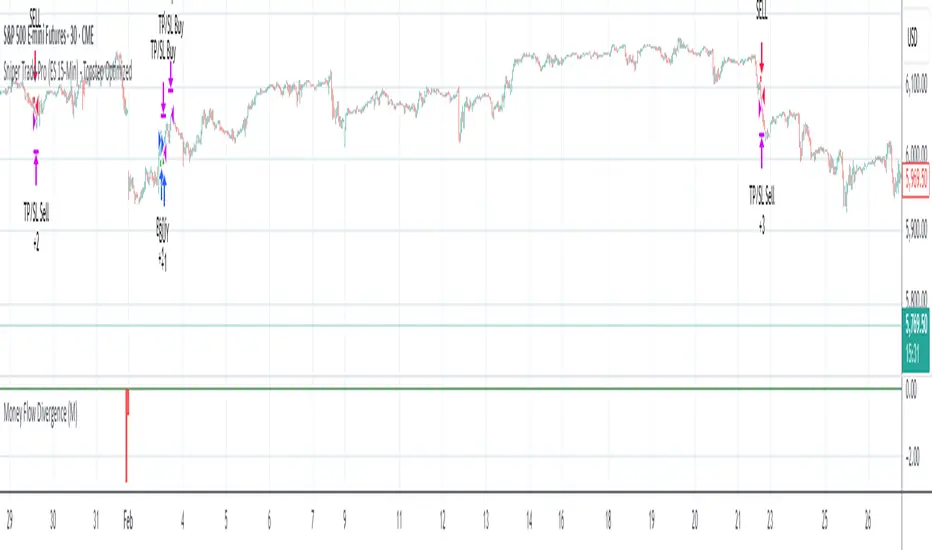 Sniper Trade Pro is an advanced algorithmic trading strategy designed specifically for E-mini S&P 500 (ES) Futures on the 15-minute timeframe. This strategy is optimized for Topstep 50K evaluations, incorporating strict risk management to comply with their max $1,000 daily loss limit while maintaining a high probability of success.