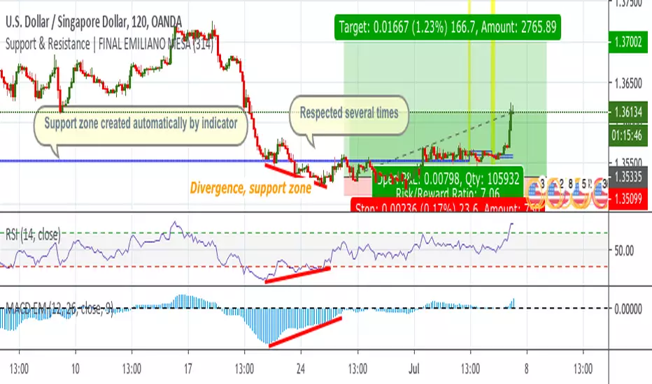 After months of studying, and lots of coding I figured out support & resistance levels are much more complicated than what we thought. After hundreds of failed trials using price(close) as the main source of information for my S/R indicators, after modifying certain values, and creating an effective method to define S/R levels, which does not include price a huge advanced was made. Today I introduce, and make public "Support & Resistance | Emiliano Mesa" by Emiliano Mesa. This indicator uses my method to find support and resistance levels, which again isn't based in price, but other factors.