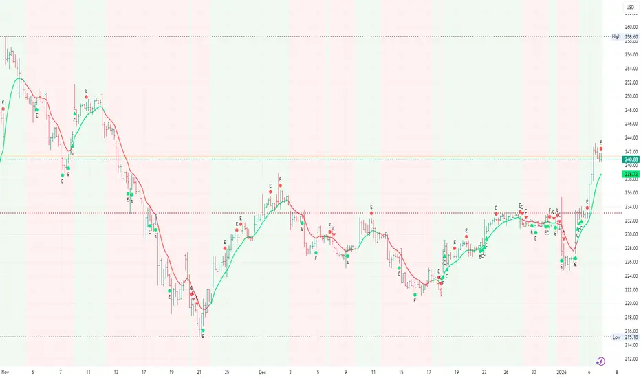 It is designed to help both beginner and advanced traders reduce noise, adapt to changing volatility, and identify early and confirmed market turns directly on the price chart.