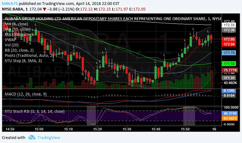 What I do if long is trail my stop using the latest completed candle's 8sma plus a few cents cushion. I will keep moving my stop up for every new candle, but ONLY if that candle's high is higher than the candle I am currently using for a stop. With this script, the candles that have made a new high over a period of the last "x" (default is 4) candles will be labelled with an "L". The same is applied in the opposite direction for a short position. Those candles are marked with an "S".