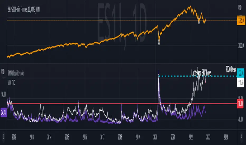 This indicator compiles the major concepts of liquidity that Market Radar illustrated over time into one easy-to-understand chart. This index measures how "illiquid" conditions are. The higher the index goes the more illiquid + volatile the market tends to behave, vis vera the lower it goes. This index allows us to evaluate the current health of market conditions and gain a visual on how liquidity is represented in the market.