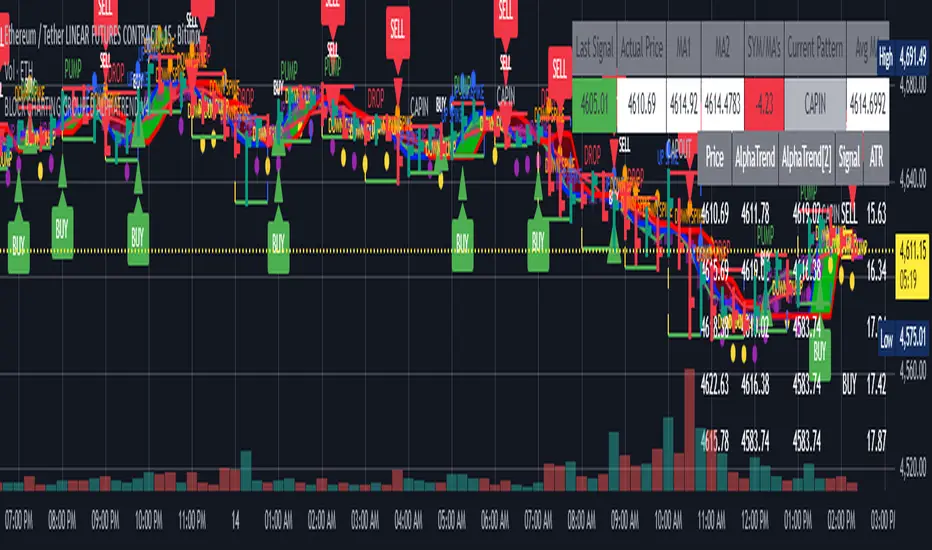 This advanced multi-tool indicator combines Block Charting, Ghost Candles, Volume Spike/Dump Detection, and a fully customizable AlphaTrend system with dashboard tables. Designed for traders who want deep market structure insights, trend signals, and visual clarity.