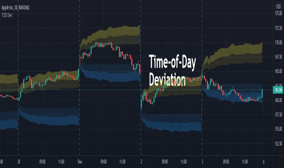 Creates a 'Time-of-Day' Deviation cone starting from the first bar of the session based upon data from previous days.