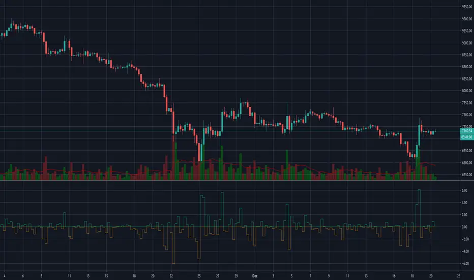 Shows the rate of change of prices. The rate of change is the percent "change" of the related bar.